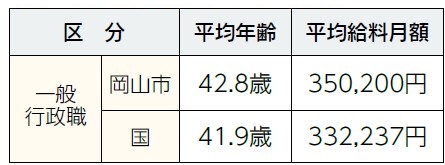※岡山市の平均給料月額および平均年齢には、定年引き上げ後の60歳超の職員を含む