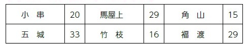 東区:可知、西大寺南、開成、山南、古都、西大寺、豊、芥子山、城東台、御休、江西、千種、雄神、浮田、平島、政田