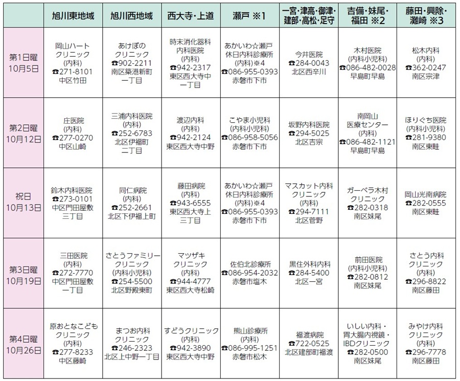■岡山市休日急患当番医表(内科系)[令和7年10月]