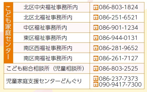 ・あなたの周りで心配な家庭の様子に気づいたら、ためらわず相談機関に連絡してください。