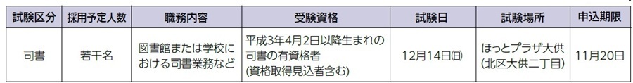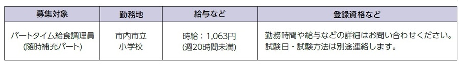 対象:教員免許状を所有し、市内幼稚園、小・中・義務教育学校、高等学校での講師希望者、臨時の養護教諭および事務職員希望者、栄養士や給食調理員、学校司書などの会計年度任用職員希望者