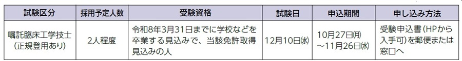 詳細は募集案内(HPから入手可)をご確認ください。検査技師、事務職員など他の職種もHPで募集しています。