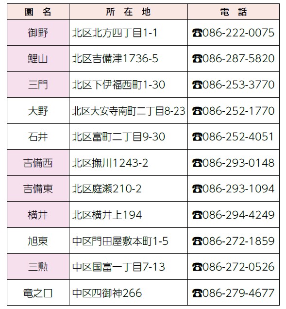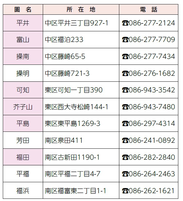 ◇〔桃色網かけ〕は3歳児を募集している園です。