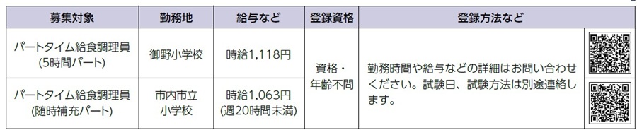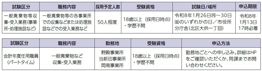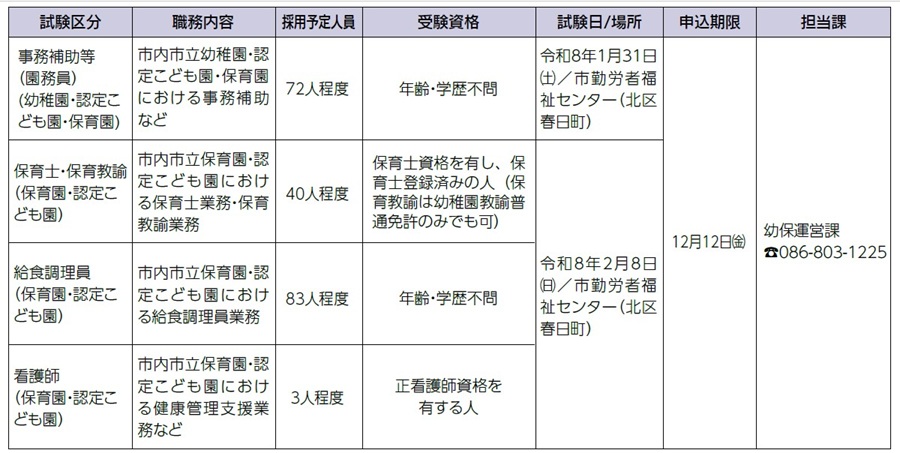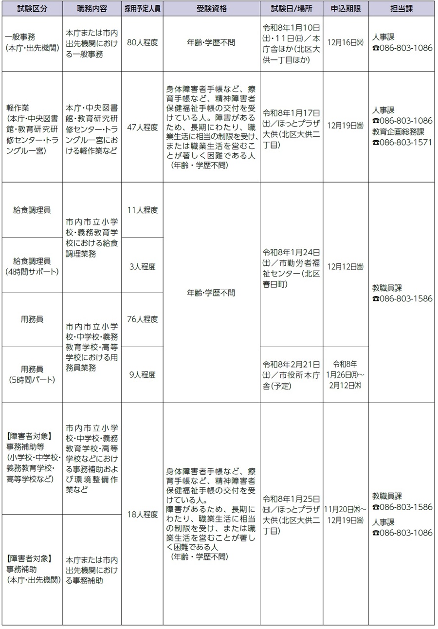 詳細は、募集要項(同課・下表の各勤務地などで配布。HPからも入手可)をご確認ください。