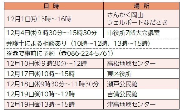 ■岡山市成年後見センター専門相談会(無料・要予約)