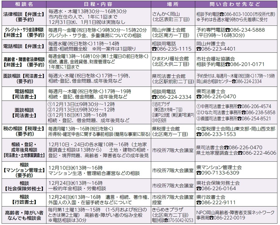 - 広報紙名 : 市民のひろばおかやま 2025年12月号 No.1479