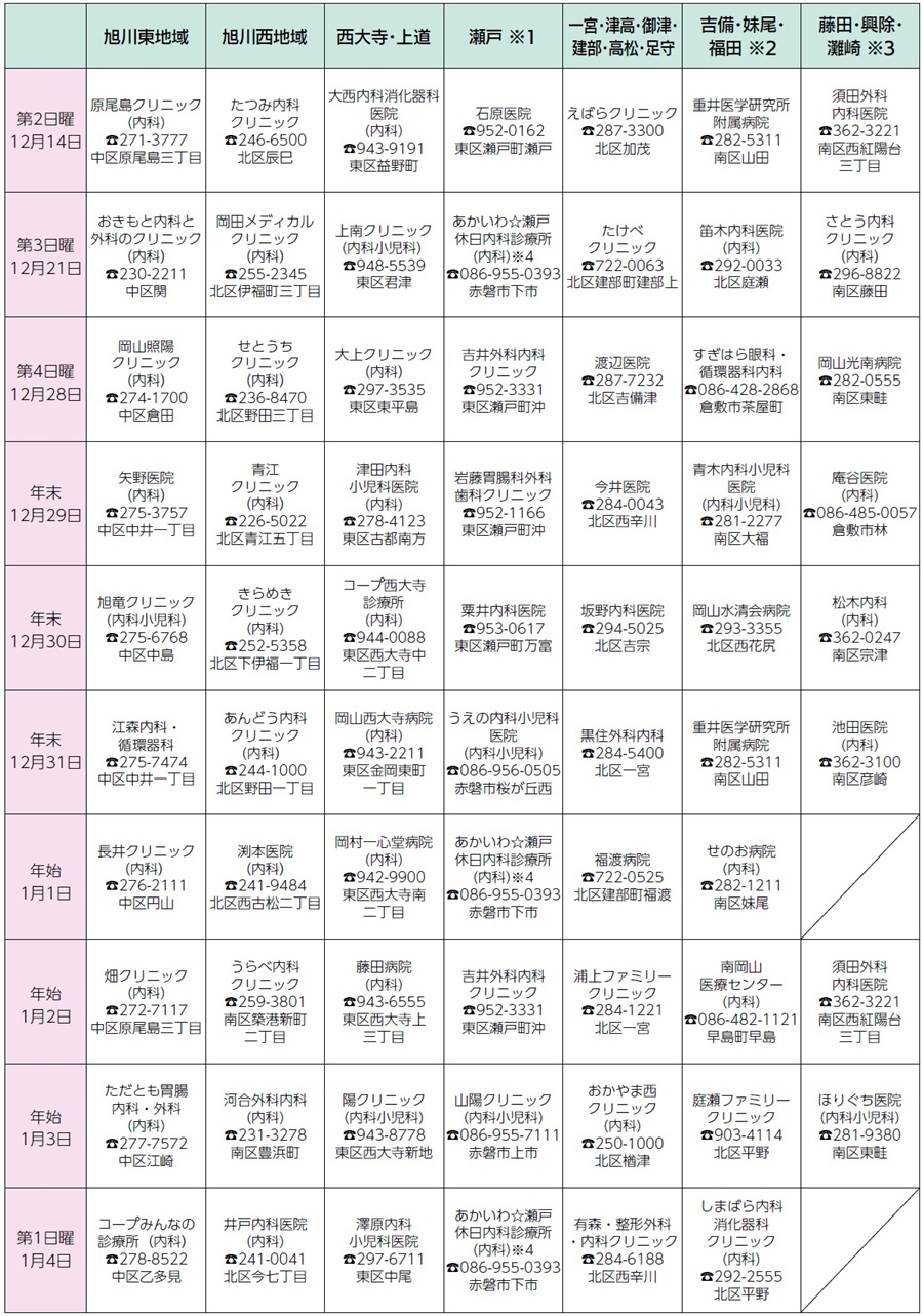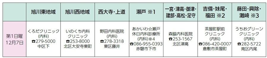 ■岡山市休日急患当番医表(内科系)〔令和7年12月〕