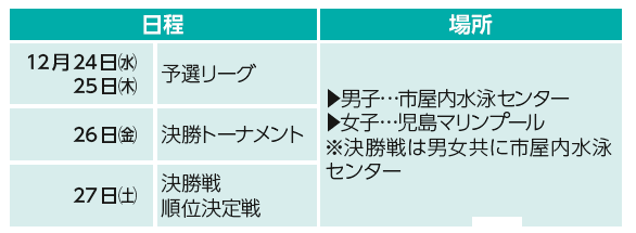 ~12月24日(水)~27日(土)、水球の全国大会開幕!~