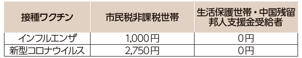 ◇定期接種の対象者で減免対象に該当する人は、減免申請ができます