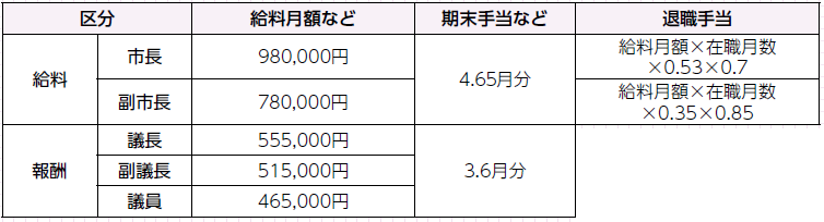 ※市長・副市長は特別条例により、退職手当を減額しています。