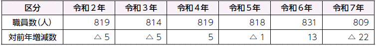 ※職員数は、一般職に属する職員の数で、任用期間の定めのある職員を含みます。