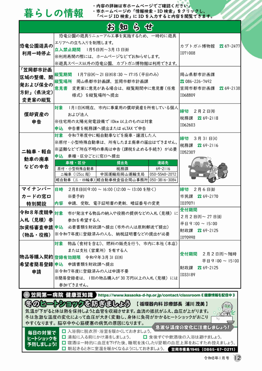 くらし 広報かさおか 2026年1月号 12面 12/20 前の記事 次の記事 発行日 : 2026年01月01日 自治体名 : 岡山県笠岡市 広報紙名 : 広報かさおか 2026年1月号 Tweet シェアする 広報かさおか 2026年1月号 11面 広報かさおか 2026年1月号 13面