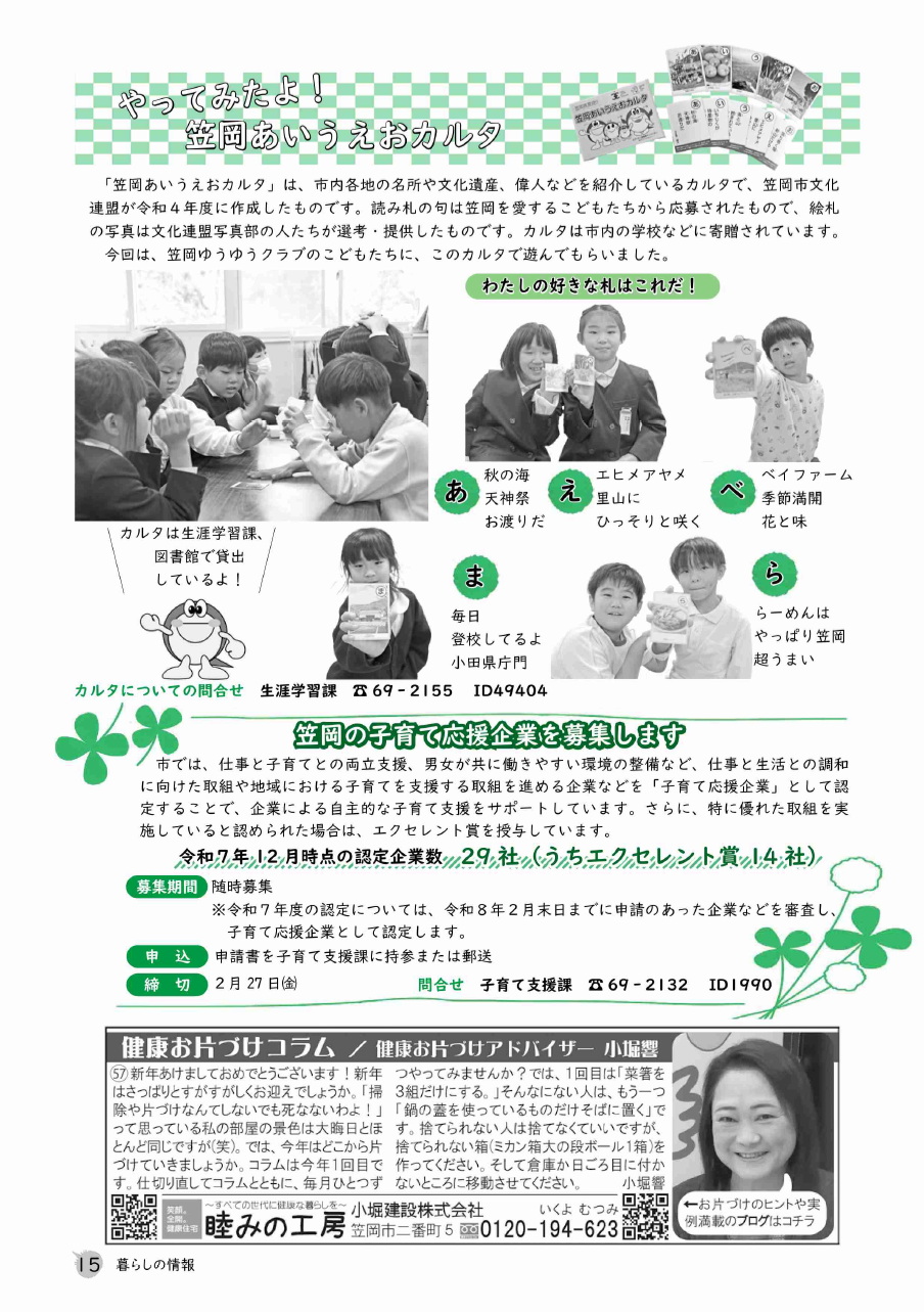子育て 広報かさおか 2026年1月号 15面 15/20 前の記事 次の記事 発行日 : 2026年01月01日 自治体名 : 岡山県笠岡市 広報紙名 : 広報かさおか 2026年1月号 Tweet シェアする 広報かさおか 2026年1月号 14面 広報かさおか 2026年1月号 16面