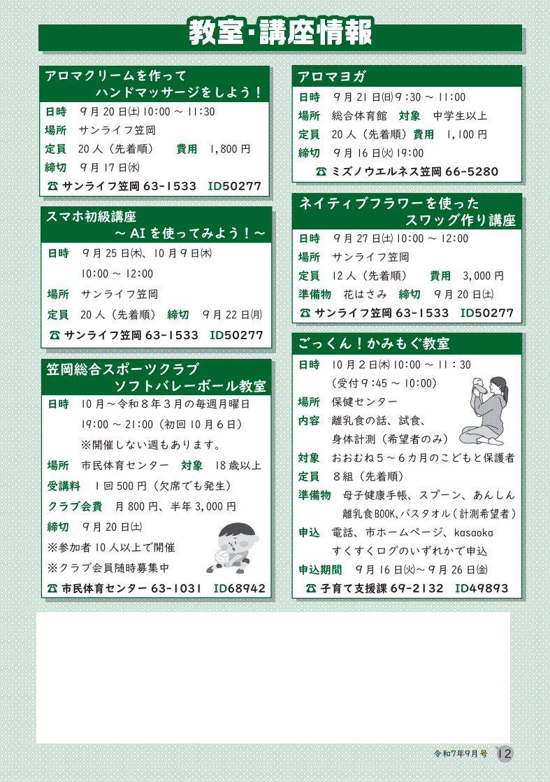 講座 広報かさおか 2025年9月号 12面 12/20 前の記事 次の記事 発行日 : 2025年09月01日 自治体名 : 岡山県笠岡市 広報紙名 : 広報かさおか 2025年9月号 Tweet シェアする 広報かさおか 2025年9月号 11面 広報かさおか 2025年9月号 13面