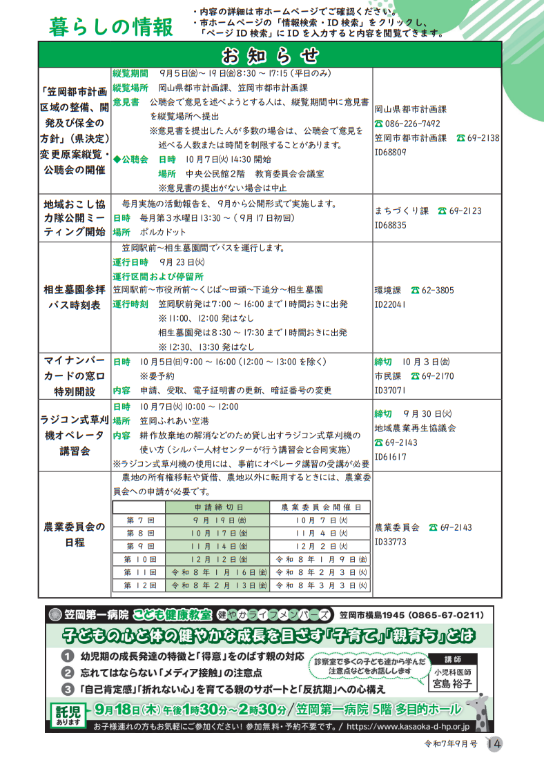 くらし 広報かさおか 2025年9月号 14面 14/20 前の記事 次の記事 発行日 : 2025年09月01日 自治体名 : 岡山県笠岡市 広報紙名 : 広報かさおか 2025年9月号 Tweet シェアする 広報かさおか 2025年9月号 13面 広報かさおか 2025年9月号 15面