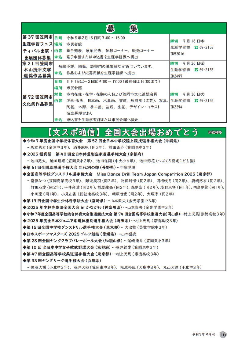 くらし 広報かさおか 2025年9月号 16面 16/20 前の記事 次の記事 発行日 : 2025年09月01日 自治体名 : 岡山県笠岡市 広報紙名 : 広報かさおか 2025年9月号 Tweet シェアする 広報かさおか 2025年9月号 15面 広報かさおか 2025年9月号 17面