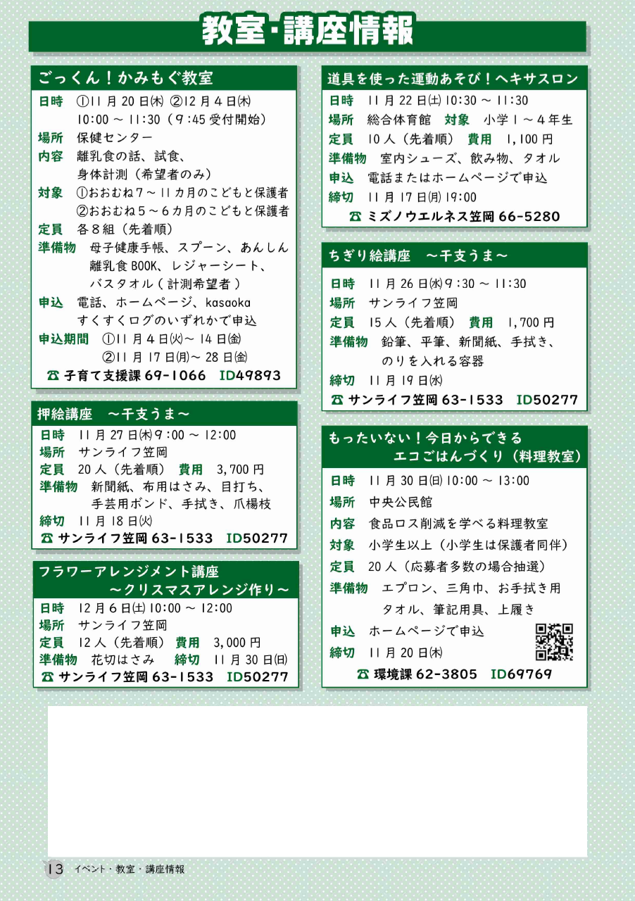 講座 広報かさおか 2025年11月号 13面 13/20 前の記事 次の記事 発行日 : 2025年11月01日 自治体名 : 岡山県笠岡市 広報紙名 : 広報かさおか 2025年11月号 Tweet シェアする 広報かさおか 2025年11月号 12面 広報かさおか 2025年11月号 14面