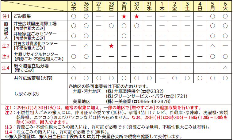 ■ごみの収集など(○:稼働 △:12時まで ★:注記参照 ―:休み)