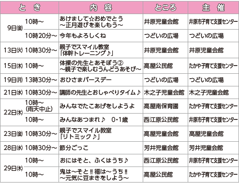 ■1月こそだてカレンダー ※事前に予約が必要です。