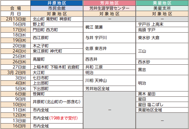 ※上記の対象地区にかかわらず、全ての会場で市内全域の申告相談をお受けします。