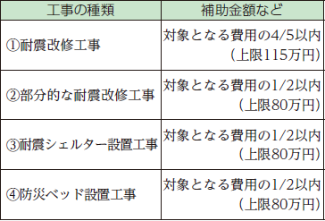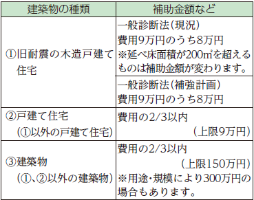 市では、次のとおり住宅などに対する耐震診断や耐震改修をする場合、その費用の一部を補助します。