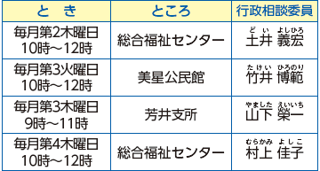 また、市内全地区を対象に定例相談日を設けていますので、ご利用ください。