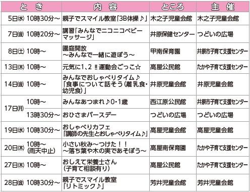 ■11月こそだてカレンダー ※事前に予約が必要です。