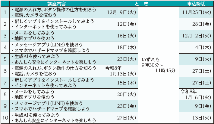 初心者でも安心してスマホの活用方法を学べる講習会です。実際に体験しながら一緒に学びませんか?スマホをお持ちでなくても、貸し出し機があるのでご心配なく!どなたでも気軽にご参加いただけます。