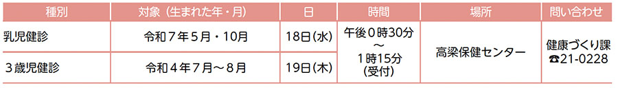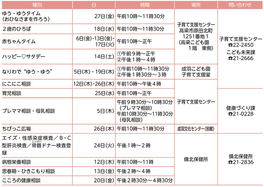 子育て 子育て 28/39 前の記事 次の記事 発行日 : 2026年01月15日 自治体名 : 岡山県高梁市 広報紙名 : 広報たかはし 2026年1月号(255号) ■子どもの健診(2月) ■子育て支援・健康相談(2月) ※全て予約が必要です Tweet シェアする 相談(2月) 休日当番医(2月)
