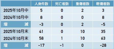 ◆2025年10月赤磐市内交通事故発生状況[概数]
