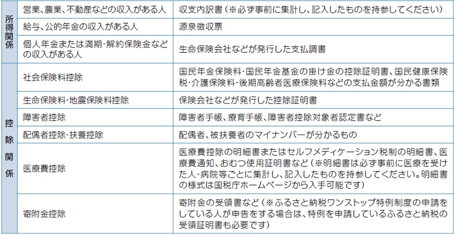 ・申告会場を利用する場合は、会場の混雑緩和のため、医療費控除の明細書や事業所得の収支内訳書などの申告に必要な書類の準備を自宅で済ませた上でご来場ください。