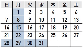 ※青色のマスが休館日です。