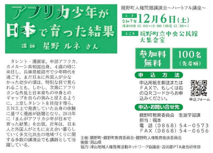 くらし アフリカ少年が日本で育った結果 6/41 前の記事 次の記事 記事を読み上げる 発行日 : 2025年10月01日 自治体名 : 岡山県鏡野町 広報紙名 : 広報かがみの 2025年10月号 Tweet シェアする 心配ごと相談のお知らせ(弁護士相談あり) 10月10日は世界メンタルヘルスデー