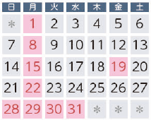 ※赤字は休館日です