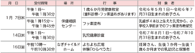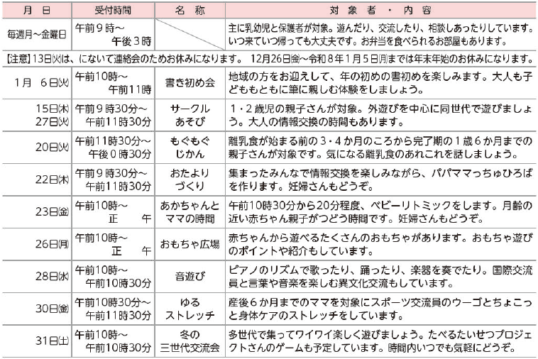 主に小学生以下の子どもと妊婦を対象とした行事を紹介します。