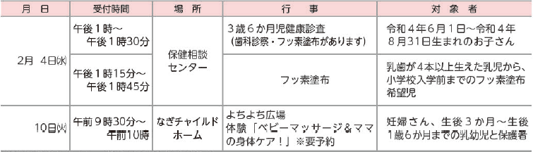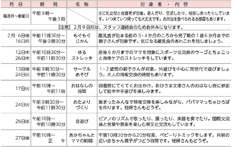主に小学生以下の子どもと妊婦を対象とした行事を紹介します。