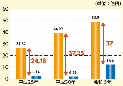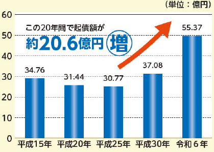 そのため、令和6年度末の基金(貯金)は、起債(借金)を、約37億円上回っています。