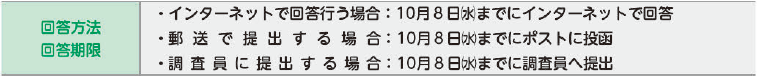 9月中旬から調査員が各ご家庭に訪問し、調査の趣旨などを説明し、調査書類の配布を行っております。