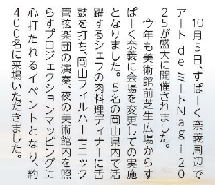 イベント アート de ミート Nagi 2025 2/40 前の記事 次の記事 発行日 : 2025年11月01日 自治体名 : 岡山県奈義町 広報紙名 : 広報NAGI 2025年11月号(828号) Tweet シェアする 令和7年度 奈義町農林業祭 with 東山工業祭 創設60周年 陸上自衛隊日本原駐屯地記念イベント開催