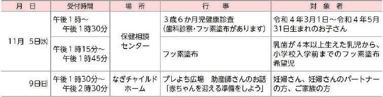 主に小学生以下の子どもと妊婦を対象とした行事を紹介します。
