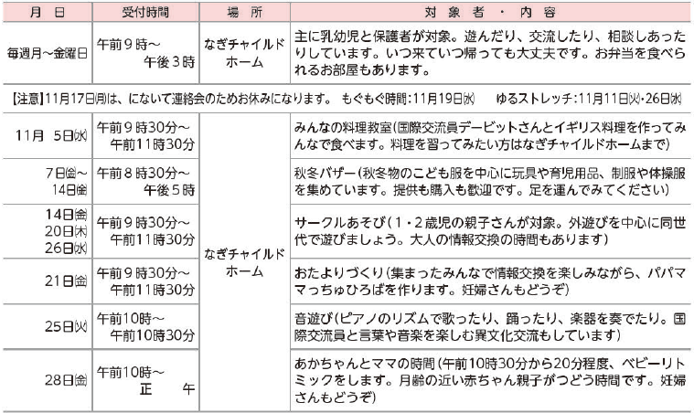 問合せ:なぎチャイルドホーム