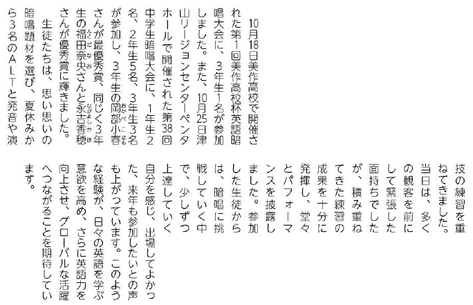 子育て 子育て応援宣言のまち 子育てするなら奈義町で Vol.86 36/40 前の記事 次の記事 発行日 : 2025年11月01日 自治体名 : 岡山県奈義町 広報紙名 : 広報NAGI 2025年11月号(828号) がんばる子どもたちをみんなで応援しましょう! ■奈義中学校の生徒が活躍!英語暗唱大会でパフォーマンス発揮! Tweet シェアする [消防・防災]秋の全国火災予防運動 編集後記