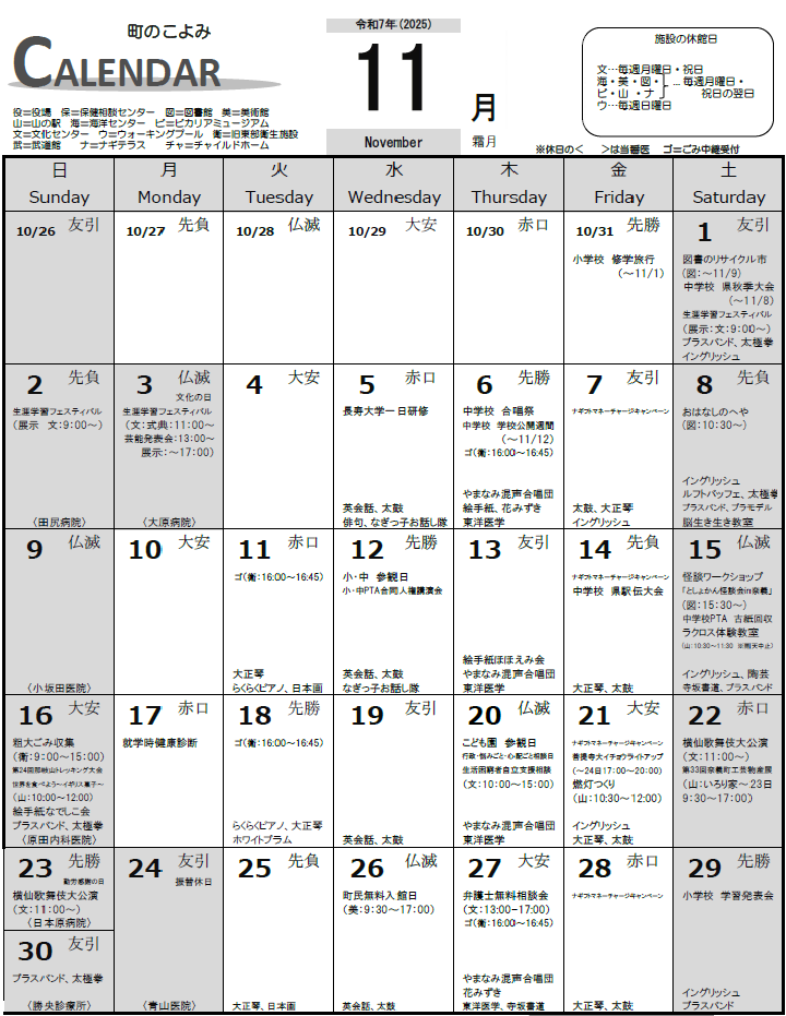 くらし 町のこよみ 38/40 前の記事 次の記事 発行日 : 2025年11月01日 自治体名 : 岡山県奈義町 広報紙名 : 広報NAGI 2025年11月号(828号) ※日程は変更する場合がありますので必ずお確かめください。 Tweet シェアする 編集後記 可燃ごみ収集/今月の納税等/役場各課直通ダイヤル