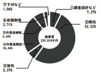 事業費の中で最も大きな割合を占めているのが、森林の手入れにかかる「施業費」です。
