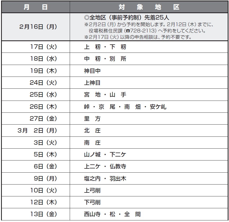 ※2月20日(金)、3月4日(水)、11日(水)は、申告相談がありませんので、ご注意ください。