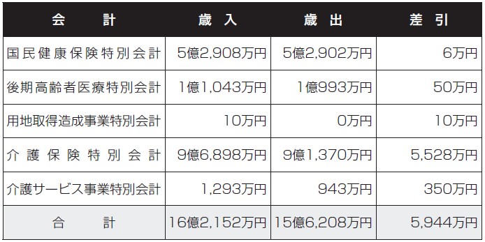 令和6年度特別会計の決算状況は、合計額で歳入が16億2152万円、前年度比1.4%の減、歳出が15億6208万円、前年度比1.2%の増となり、差し引き5944万円を繰り越すことになりました。