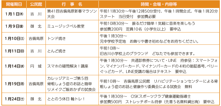 1月の公民館主催行事をお知らせします。