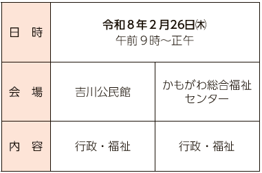 行政・人権・福祉相談(心配ごと相談)を次の2会場で行います。相談は無料です。秘密は固く守られますので、安心してお気軽にご相談ください。