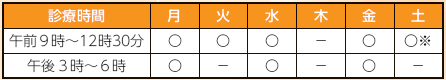休診日:火曜日午後、木曜日、土曜日午後、日曜日、祝日