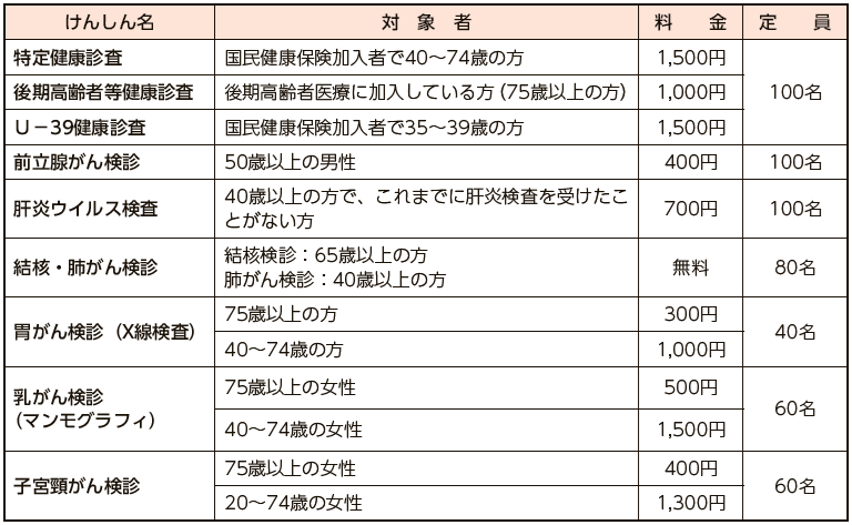 町では、今年度けんしんを受診されていない方を対象に、総合けんしんを以下の日程で実施します。